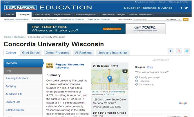 USNEWS世界新聞報導:美國威斯康星協和大學全美中西部最新排CUW-是你最佳的選擇(點選2016年美國最佳大學