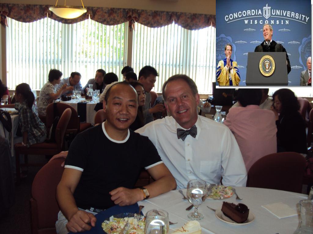 MBA班學員與CUW校長合影 - 校長頒發博士學位給美國前總統-小布什 (點選白宮鏈結)